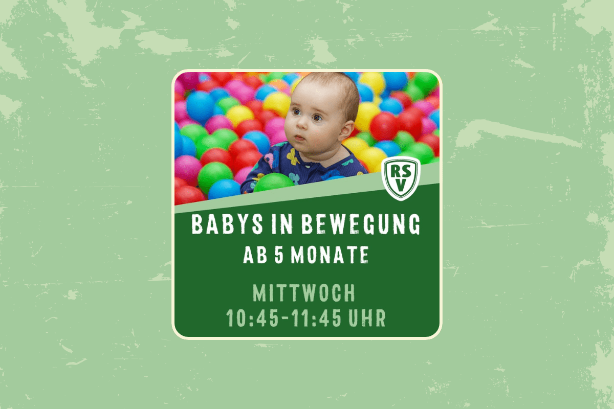 Bei „Babys in Bewegung“ laden wir alle Eltern herzlich ein, mit ihren Babys ab fünf Monaten die Welt mit allen Sinnen zu entdecken. Durch gezielte Bewegungsanregungen, Fingerspiele und Gesang wird die körperliche und geistige Entwicklung im ersten Lebensjahr gestärkt.
